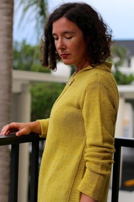 Softly draped with a gentle a-line, this cardigan swings while you walk. The double fastening at the front can be worn either open or closed for two different looks. Shown with a larger amount of ease in the sample, this cardigan works really well also when worn with a closer fit.