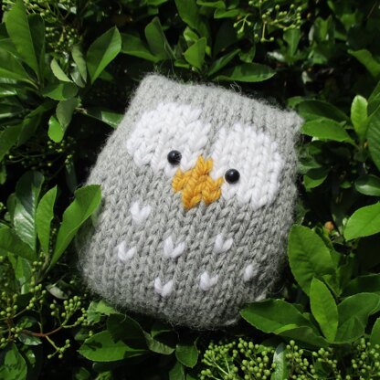 This a simple to knit owl, and there is no tricky colour-work as the features are embroidered after knitting using Swiss Darning (also known as duplicate stitch). A chart is included in the pattern for the colour-work. Designed by Amanda Berry @fluffandfuzz, the owl is knitted in wool/alpaca blend aran weight yarns on single pointed needles (not in the round). For beginners and above, other techniques used include seaming, increases and decreases.