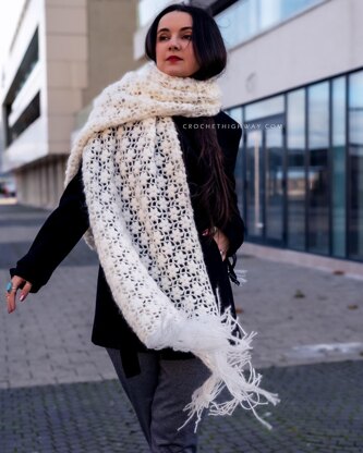 Morning light streams through the window as you pick up your crochet hook and the soft, cloudlike mohair yarn. Today’s mission? Continuing your journey through the Subnivean Shawl—a luscious, oversized rectangle of beauty that’s equal parts cozy and ethereal. You run your fingers over the stitches you’ve already created, marveling at how the fluffy, flowery texture blooms like tiny winter blossoms on snow.