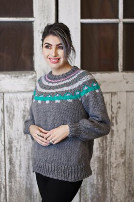 The Sugar Cookie Pullover is made with bulky weight yarn making it a quick and comfy knit!