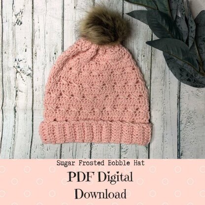 This is a pattern for The Sugar Frosted Bobble Hat - A super easy and fun pattern that is suitable for beginners right through to advanced crocheters.