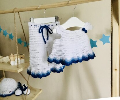Summer Baby Top & Pants Set pattern is for Size 0-3 months / 3-6 months / 6-12 months / 1-2 years