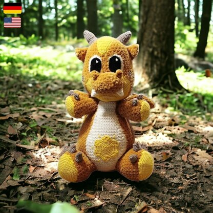 The finished dragon will be about 35cm high. Of course, the size can vary depending on whether you crochet tight or loose. The choice of wool is also important. I crochet with cotton yarn 125m/50g (100% cotton) and Himalaya Dolphin Baby 120m/100g.