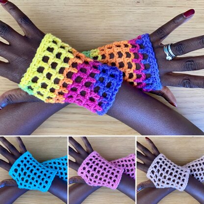 This is a quick & easy pattern and a great summer version of the fingerless glove. They are quite retro and remind me of 80s music and fashion icons Madonna and Cyndi Lauper.
