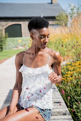 This is a light and airy top for the hot summer days. It has a versatility with the colour and simple structure. It is great for the beach as well as the city as it pairs well with shorts and jeans. It has that modern flare with the flirty flounce too, plus a looser fit for the trending flowy vibe and romantic feel. Lastly that unique twist with a 'y' back making it a talking point. This is a contiguous pattern and I have added diagrams to facilitate construction.