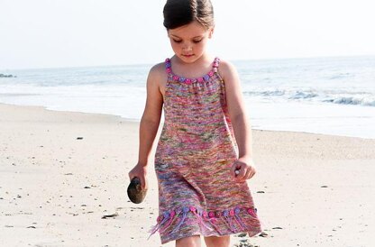 The top section is meant to be fitted enough so not to be revealing while running, playing, jumping or dancing, while the skirt has lots of positive ease to be comfortable and airy at the same time. The dress is finished with a ruffle.