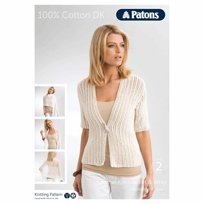 Summer Knits Jumper & Wrap in Paton 100% Cotton DK - PBN0000-05376 - Downloadable PDF is a Beginner Knitting pattern by Patons, available as a Downloadable PDF and includes instructions in English. Super fun to make, this pattern could be your next masterpiece!