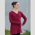 A deep rich wine red shade was the perfect choice for the leaf vines stitch patterned sleeves of this summer sweater. The A-line shape is created by the lace pattern frame and worked in twisted rib on each side of a body in stocking stitch; knitted in the round to the armholes, then flat. The lace pattern is the highlight of the sweater and relishes the beautiful mercerized Egyptian cotton, called Luxor from Hifa.