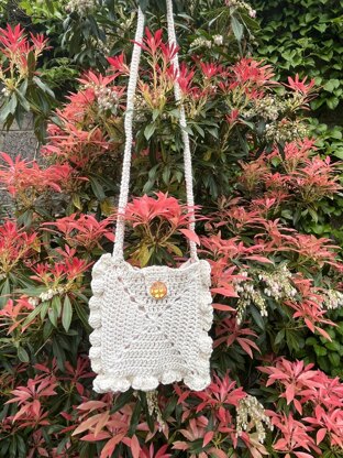 This ruffle bag is ideal for the summer as it is made from cotton and can be worn crossbody or just over the shoulder. This one is made in a simple cream colour but would look very different in other colours. The ruffle could also be made in a different colour from the body of the bag. The size of the bag may be increased/decreased according to your preference and may also be used with any other yarn weight.