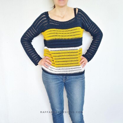 The Summer Sailing Sweater is an easy drop shoulder pullover. It is perfect for advanced beginners since it only requires double crochet stitches and chains.