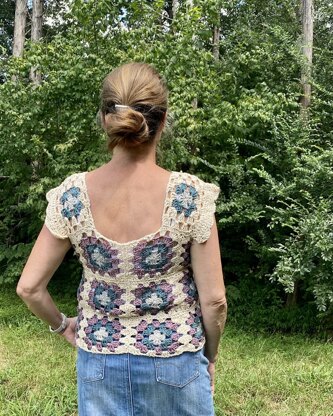 The Summer Sweater Top crochet pattern is a vintage granny square themed top, perfect for adding to your warm weather wardrobe. This gorgeous summer top is crocheted using basic crochet stitches to created granny squares that are then sewn together to created your lovely sweater. A lacy edge stitch pattern on the sleeves adds a feminine touch to this top.