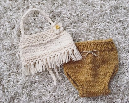 Fits both newborn and 21-22 inch reborn size knit Summer Time halter style top with tassels and wee bottoms - Pattern THIS IS NOT THE FINISHED ITEMS