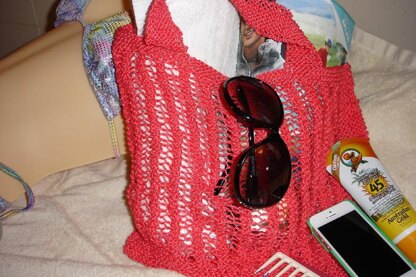 This tote makes for a beautiful addition for your day at the Beach or your Market Shopping. Lots of things will fit into this tote and the color is perfect for summer. Finished without handles measure 12" x 12" 2 balls Tahki Yarn Cotton Classic Lite color watermelon