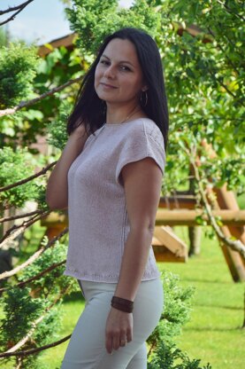 Summer vibes top is worked in the round from the bottom up. The neckline is shaping with short rows. It is a comfortable, basic wardrobe for every woman. Ideal for summer days.