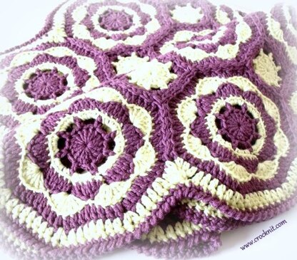 MEASUREMENTS: Blanket consisting of 20 octagon motifs will measure approximately 30in/76cm by 24in/61cm