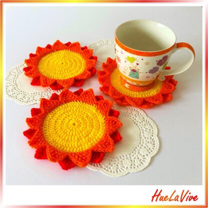 These sun coasters will light-up your coffee or dining table; or make a delightful gift for someone special !!! Diameter of the mug rugs is about 6.3” (16 cm) and they are shaped as a sun doily.
