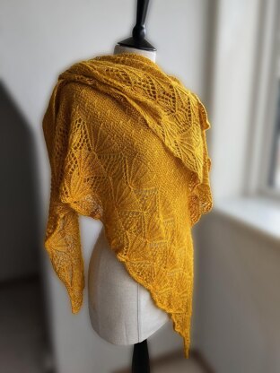 This generous shawl glows and shines. I knitted it as an invocation and invitation to the sun to come out.