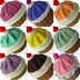 The hat is worked in one piece from the cake to the cherry, with the exception of the optional outer ridge of whipped cream which is picked up and knit last. A rolled stockinette outer ridge is perfect for all sizes. The larger sizes include an option for a wavy ruffled ridge. (A ruffled ridge can be overwhelming on a baby hat.)