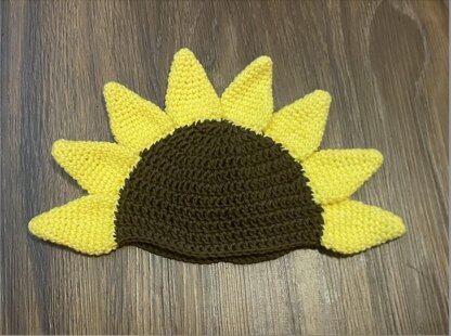 Easy pattern for a cute sunflower inspired baby hat. Sized for 3-6 months. Pattern includes 1 pdf of the written pattern in American English with images of the finished project for reference. Stitch counts are included by row. This pattern is beginner friendly but uses single crochet, double crochet, slip stitch, chain, increases, and decreases.