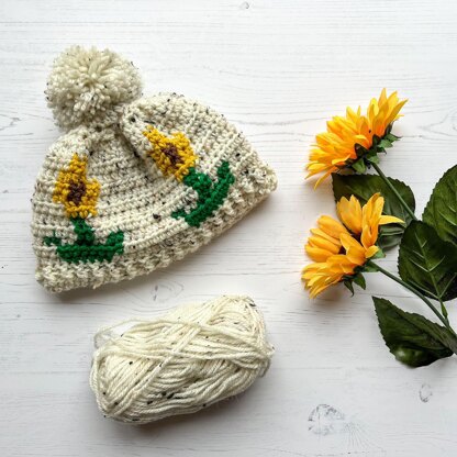 This quick and fun pattern uses colourwork to make sunflowers and comes in sizes for kids and adults! You can even add a pom pom on top too!
