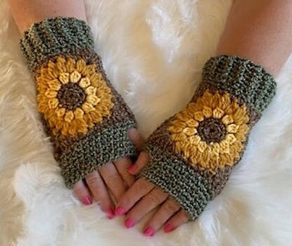 Sunflower Fingerless Gloves are perfect for the cooler seasons and those of us who prefer our fingers free for driving and detailed work.