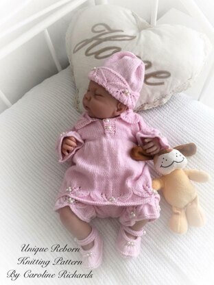 This beautiful romper suit knitting pattern is suitable for a 0 - 3 Month old baby or a 16 -22" Reborn doll
