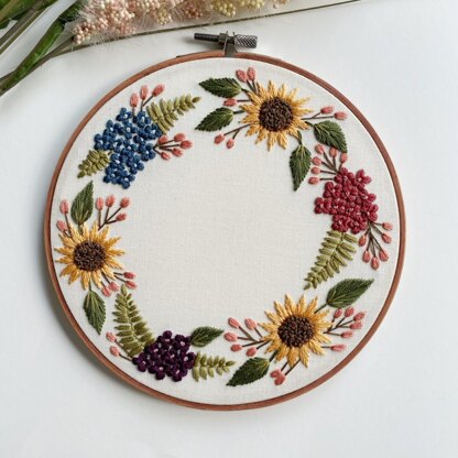 Sunflower Wreath Embroidery Pattern