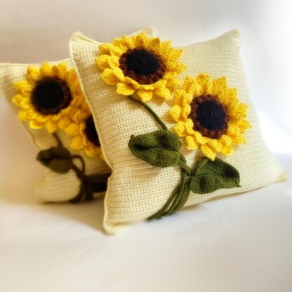 Sunflowers pillowcase. No sew crochet pattern. 3D effect.