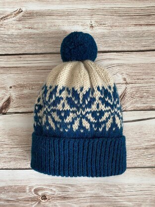 Norwegian snowflake pattern gives a special touch to the hat. And it perfectly fits any style of the clothes.