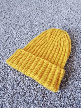 Beanie is knit in round from bottom up in 2x2 rib stitch.