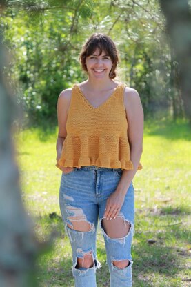 I wanted a top that would bring me joy the moment I put it on - and the Sunrays Tank does just that! Filled with beginner Tunisian and traditional crochet stitches, this baby doll top is fun and flirty! It features a flattering V neckline and 2 tiers of adorable ruffles that'll make you want to spin with delight. Plus, the bottom portion is worked from the top-down and in the round, allowing you to try it on as you go and determine the perfect length for YOUR body!