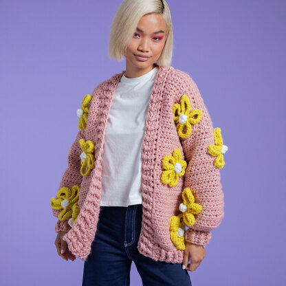 Sunshine and Daisies Cardigan - Free Crochet Pattern for Women in Paintbox Yarns Wool Blend Super Chunky
