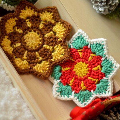 Picturing the sun sitting in the center of a blossom brings a cozy feeling to me. Here comes the Sunshine Blossom design. It was originally designed to be a coaster, either for a mug or a potted plant. However, it can also be a simple wall hanging that adds a nostalgic touch to your room. During the holiday season, this design can also be made into a holiday version. Details in the pattern.