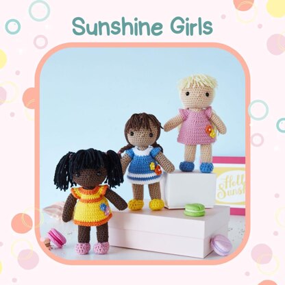 Yarn used: Sirdar Snuggly DK • 1 ball each of MC: Biscuit 494, Soft Brown 428, Bramble 501 • 1 ball each in Denim 326 (CC1), White (CC2), Precious 187 (CC3), Lemon 252 (CC4), Tangerine 489 (CC5), Sunshine 500 (CC6) Sirdar Hayfield Bonus DK • 1 ball in black 965 (CC7)