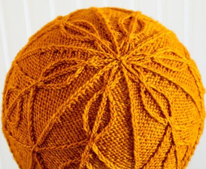 This jewel-inspired hat, with its fun and interesting traveling lines of twisted stitches and eye-catching crown, works up quickly and is a great way to show off a beautiful colorway of your favorite yarn.