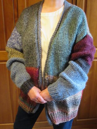 What do you do when you have a lot of left over super chunky yarn in lots of different colours. Well, you put them all together and make the best cuddle jacket you will ever need. Quick and easy to knit, and super warm it's the perfect jacket to snuggle into on a cold winter's day. Of course, this can be made in one colour or a selection of colours to suit your tastes.