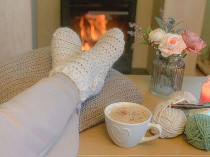 These slipper socks are worked flat and made with Super chunky yarn so are quick to work up!