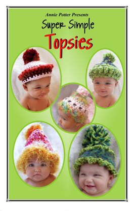 Super Simple Topsies Finally a pattern to teach you how to crochet with the lovely novelty yarns of today. Simple guide lines show how to work with these yarns, and give simple gauges for switching between different size hooks and yarns. Choose any yarn and make any of these darling caps with these simple patterns.