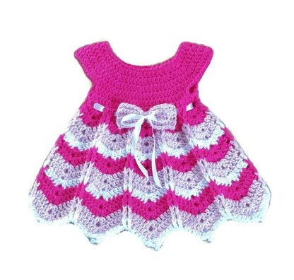 It's a zigzag looking dress will perfectly match a ripper or shevron blanket and make an unique gift for a baby girl. Use any color combinations you like. Directions are given for sizes : 0-3 months; 3-6 months and 6-12 months.
