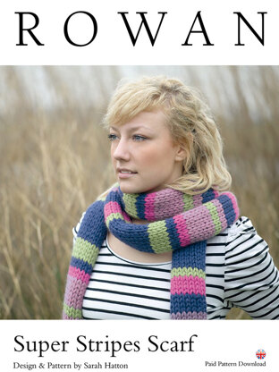 Super Stripes Scarf in Rowan Big Wool - D129 - Downloadable PDF is a Intermediate Knitting pattern by Sarah Hatton, available as a Downloadable PDF and includes instructions in English. Super fun to make, this pattern could be your next masterpiece!