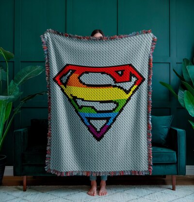 Add superhero strength to your crochet with this C2C Blanket Pattern, featuring the iconic comic book hero soaring across a vivid pixel-art background! Worked using the corner-to-corner (C2C) technique, this striking rectangular throw is a fantastic project for fans of action, comics, and all things heroic.