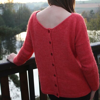 Sur un nuage [on a cloud] is the perfect cozy sweater, the one you won’t leave this winter because it feels so good and is both comfy and feminine with the buttoned back that gives a twist of sensuality to this casual pattern. We will start working on the top of the front, then pick up stitches on the shoulders to work the backs before joining for body and picking up stitches to work sleeves in the round.