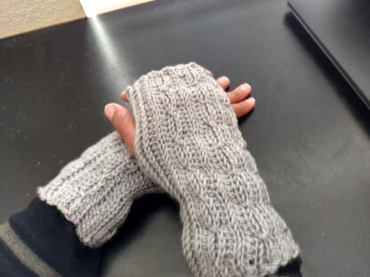 Suwon Mittens are fingerless mittens featuring cable-like crochet stitches. Crochet patterns generally use post-stitches like fpdc and bpdc to mimic knitted cables. This pattern just plays around hdc and sl st to create simple knit-like cables.