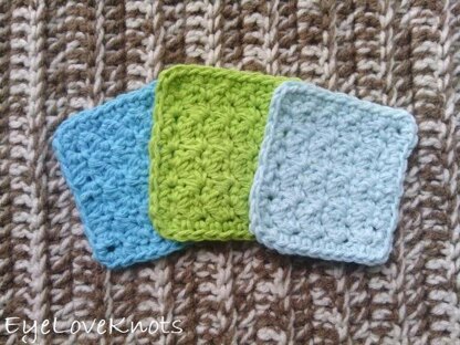 Materials You'll Need for a Set of 4: 80 Yards of Worsted Weight Yarn (I used Lily Sugar n Cream in Robin's Egg, Turquoise and Hot Apple), H8/5mm Crochet Hook, Tapestry Needle and optional, Jewelry Pliers