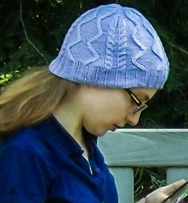 This hat is knit from the bottom up, with an option to repeat the cables more times to make it more of a slouchy hat, and the cables meet at the crown to make a flower of sorts.