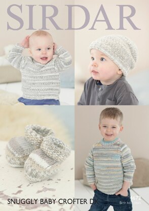 Sweater, Hat and Bootees in Sirdar Snuggly Baby Crofter DK - 4672- Downloadable PDF is a Intermediate Knitting pattern by Sirdar, available as a Downloadable PDF and includes instructions in English. Super fun to make, this pattern could be your next masterpiece!