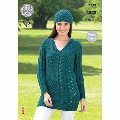 Sweater, Tunics and Hats Knitted in King Cole Fashion Aran - P4349 - Leaflet is a Intermediate Knitting pattern by King Cole, available as a Leaflet and includes instructions in English. Super fun to make, this pattern could be your next masterpiece!
