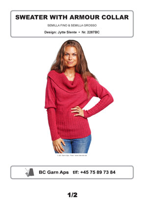Sweater with Armour Collar in BC Garn Semilla Fino & Semilla Grosso - 2287BC - Downloadable PDF is a free Intermediate Knitting pattern by Jytte Slente, available as a Downloadable PDF and includes instructions in English. Super fun to make, this pattern could be your next masterpiece!