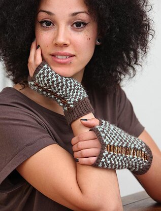 The mitts which are worked in the round on dpns are knitted in 2 shades of my [Baby Alpaca DK][1] in shades Bitter Choc & Menthe