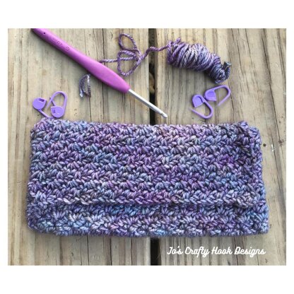 This clutch is just the right size for you to carry your keys, wallet, and sunglasses. It can be accessorized with buttons, beads, snaps, and more.